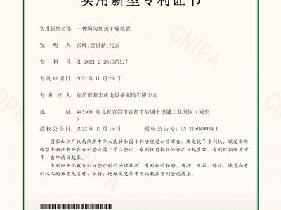 實用新型專利證書《一種均勻加熱干燥裝置》