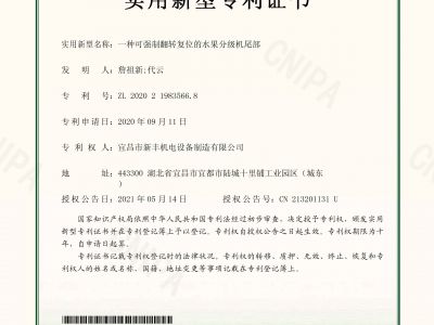 實用新型專利證書《一種可強制翻轉復位的水果分級機尾部》