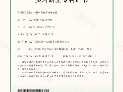 實用新型專利證書《一種料果環形輸送裝置》